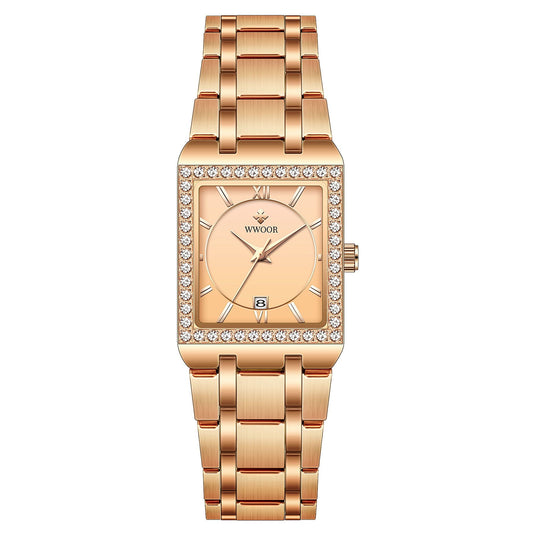 Grip Love Belt Diamond Waterproof Square Steel Band Quartz Women's Watch